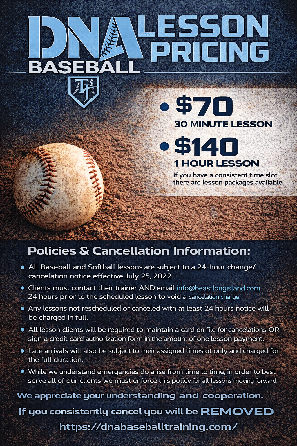 • Individualized 1-on-1 Lessons: Hitting, Catching & Fielding (Baseball / Softball)